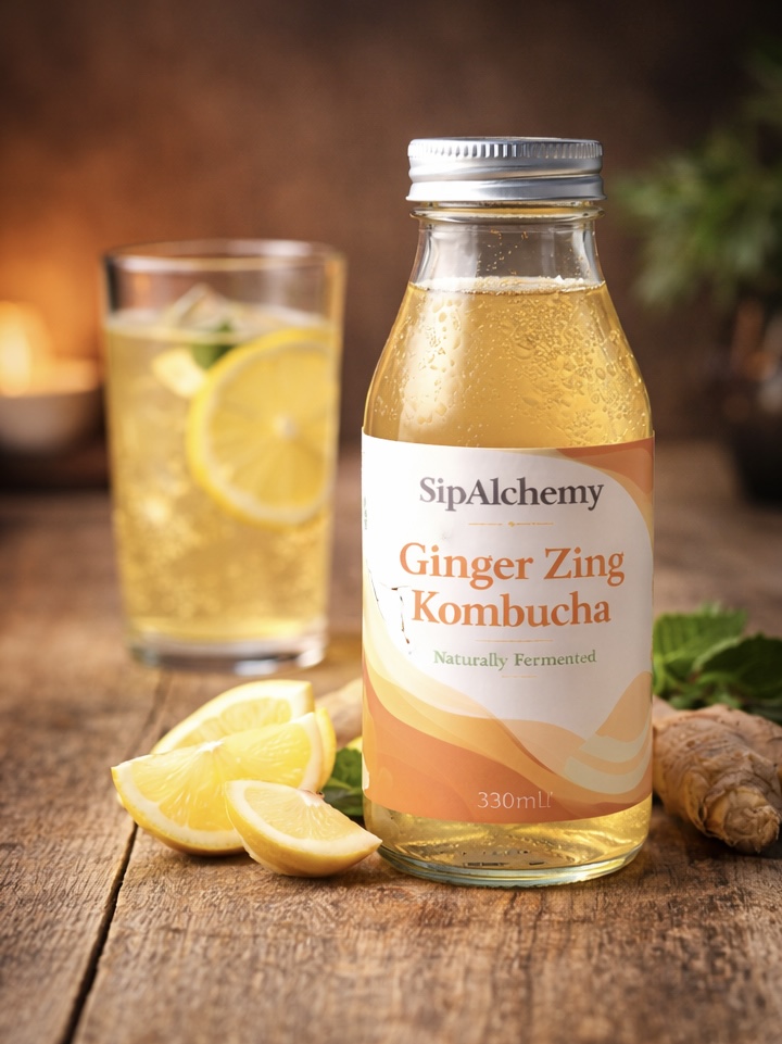 Ginger Zing Kombucha is a handcrafted sparkling beverage brewed using traditional fermentation methods and infused with real ginger. Lightly effervescent and balanced in flavour, it delivers a refreshing taste experience without being overly sweet.