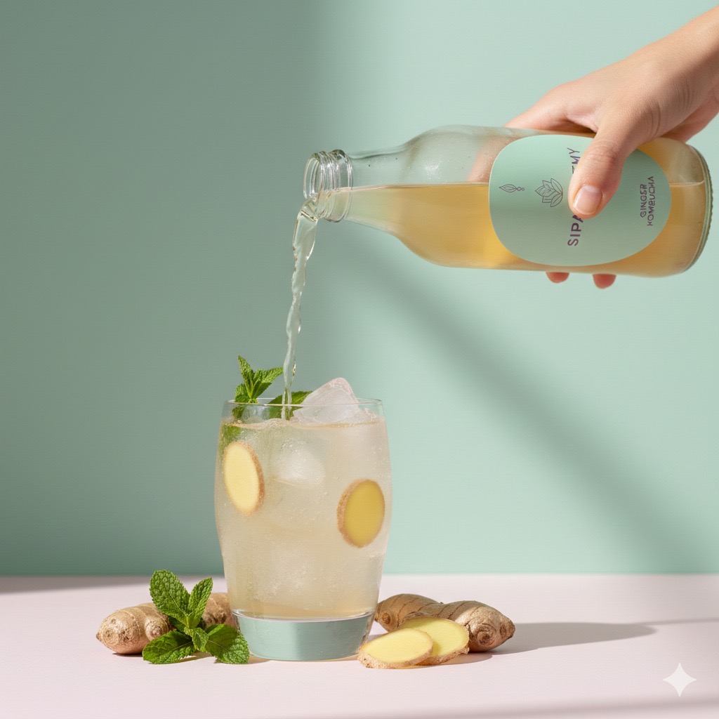 A naturally fermented ginger kombucha crafted to support digestion while delivering a vibrant, refreshing taste.