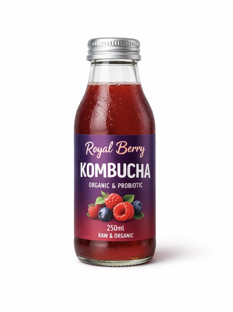 Royal Berry Kombucha is a refreshing probiotic drink made with mixed organic berries and 100% organic ingredients. Naturally fermented for a balanced sweet and tangy flavour, perfect for everyday enjoyment.